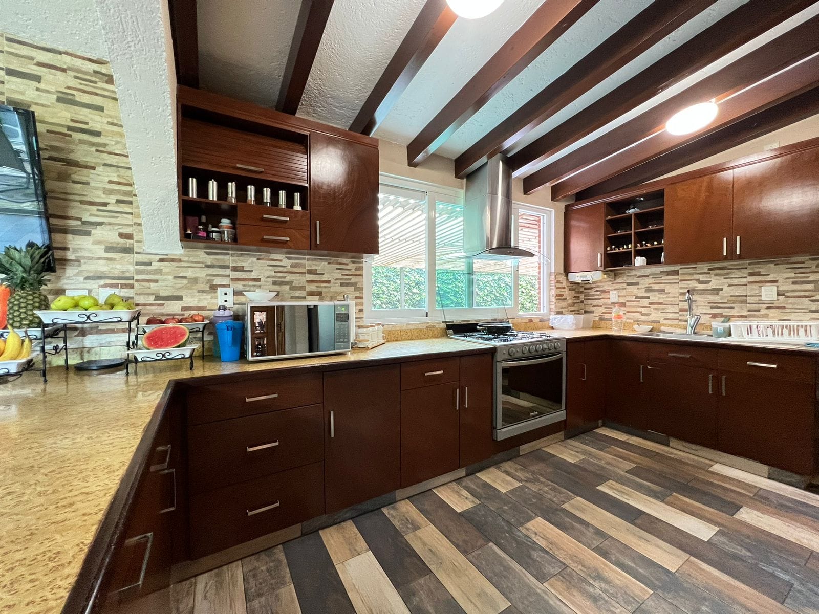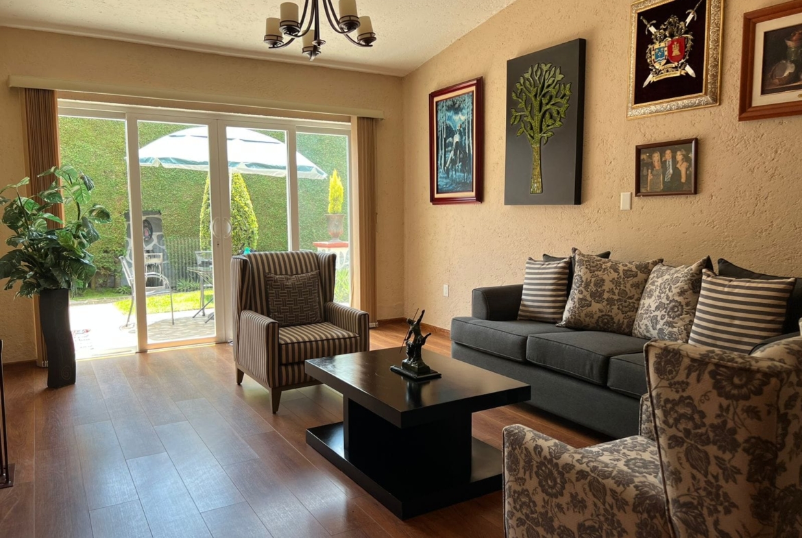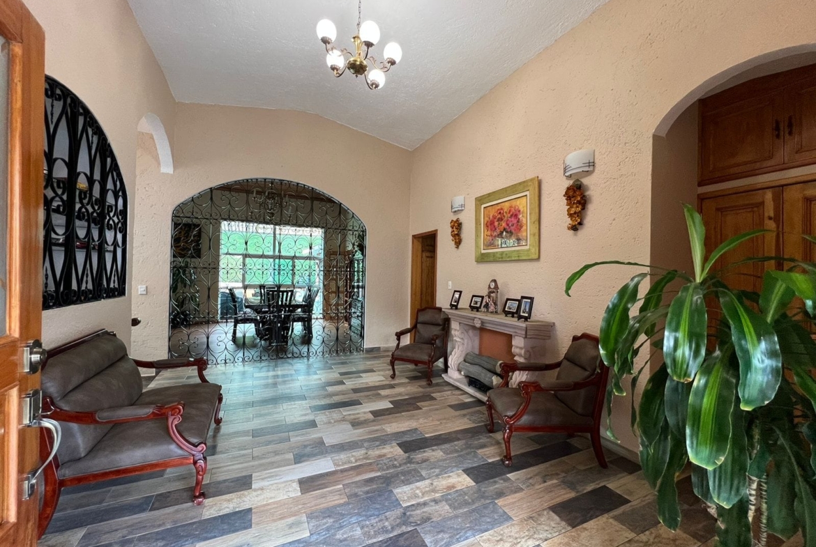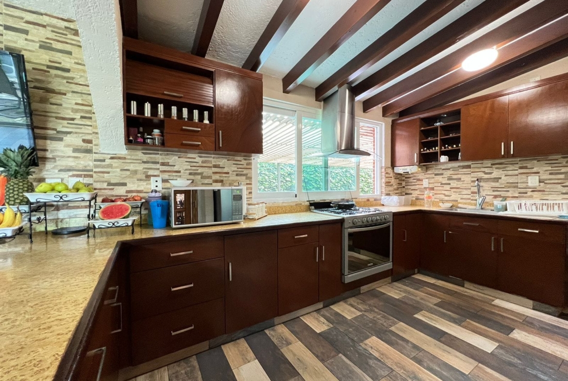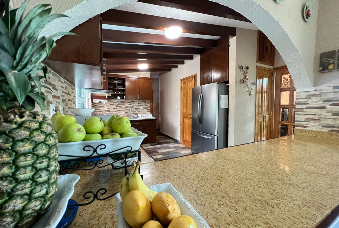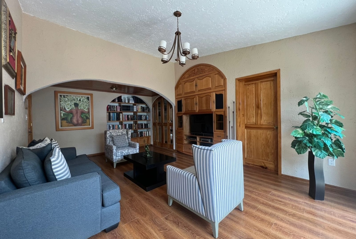 • Sala y comedor a doble altura con acabados de madera y candiles