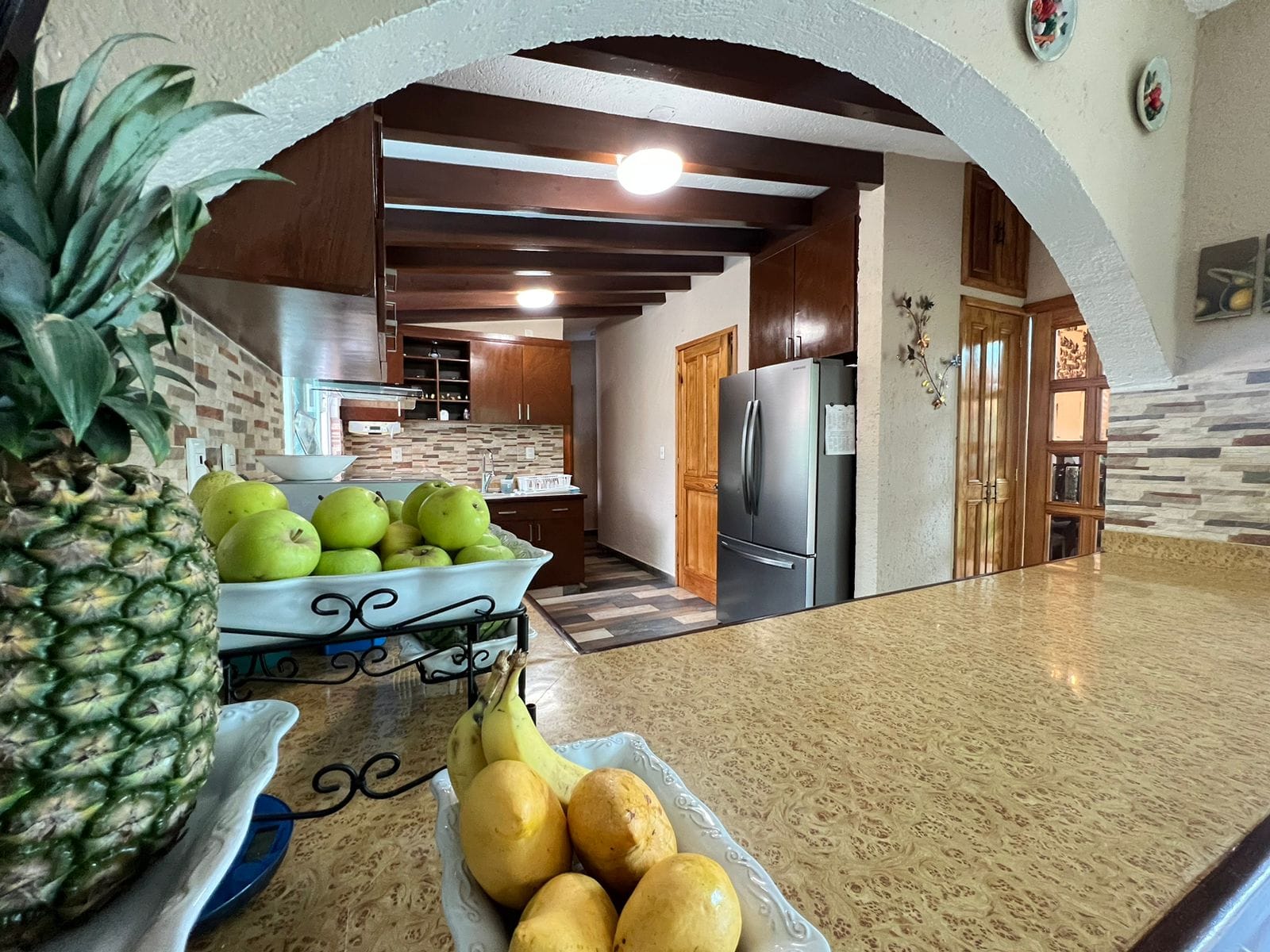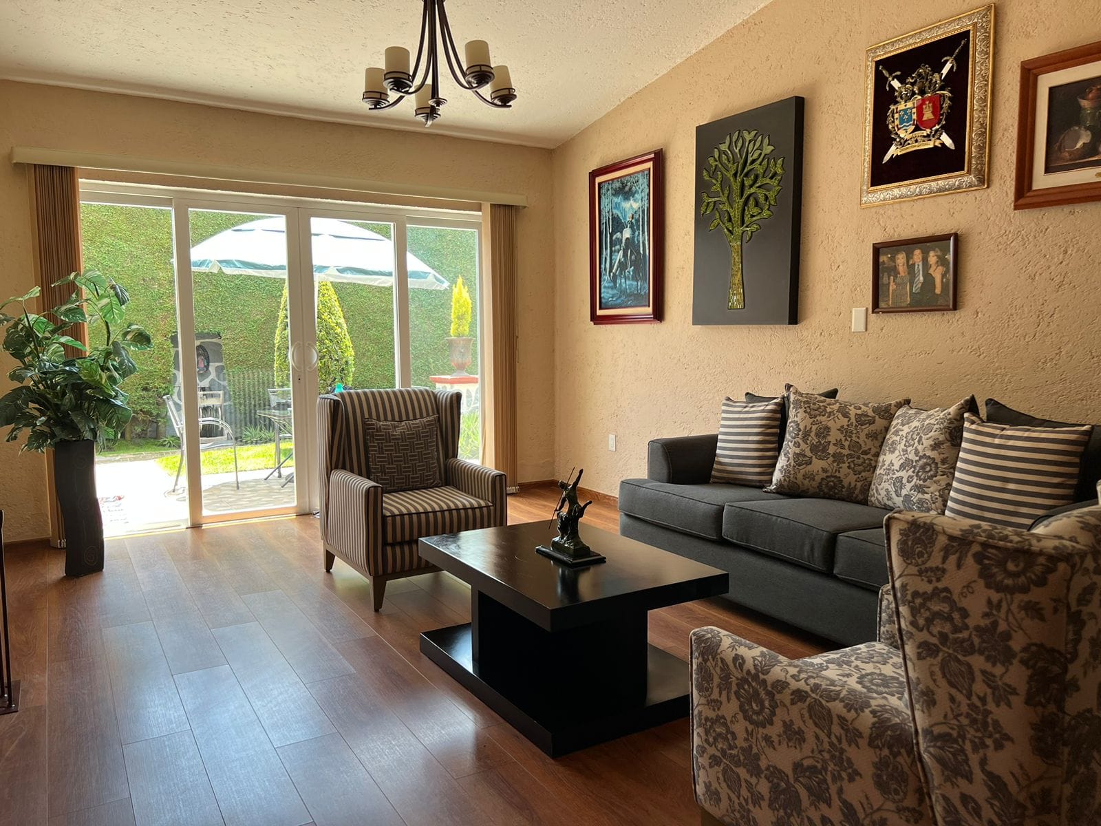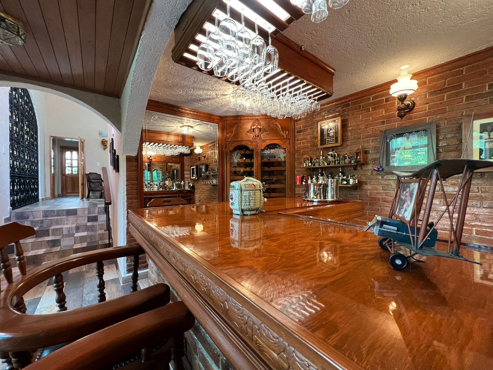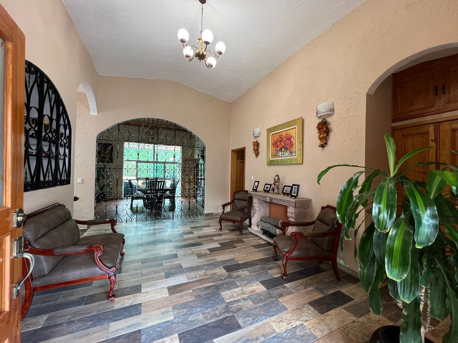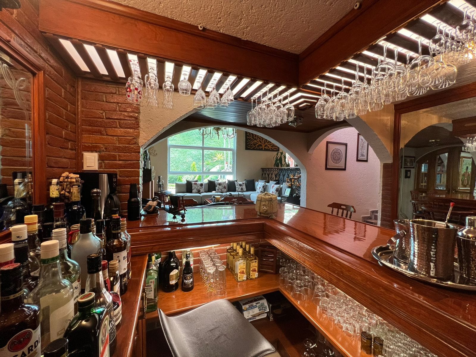 • Sala y comedor a doble altura con acabados de madera y candiles