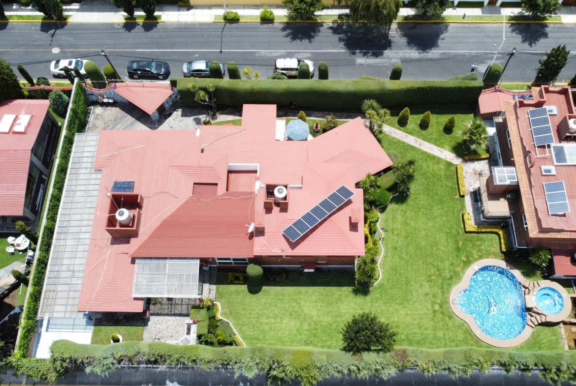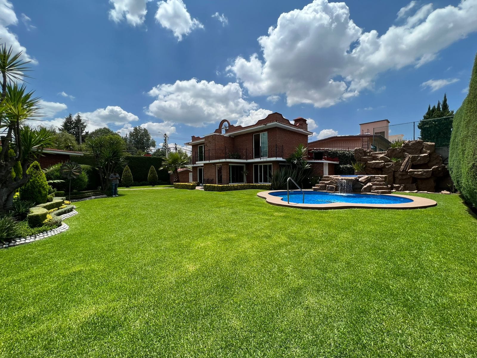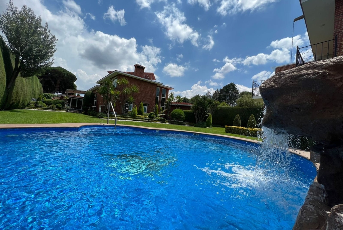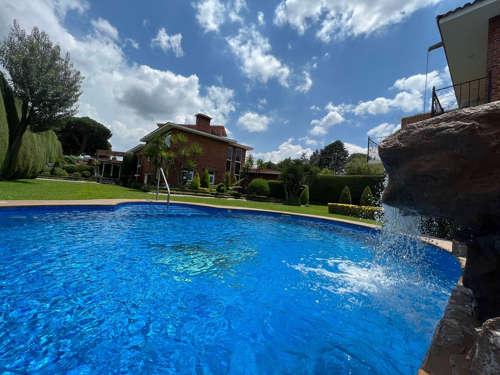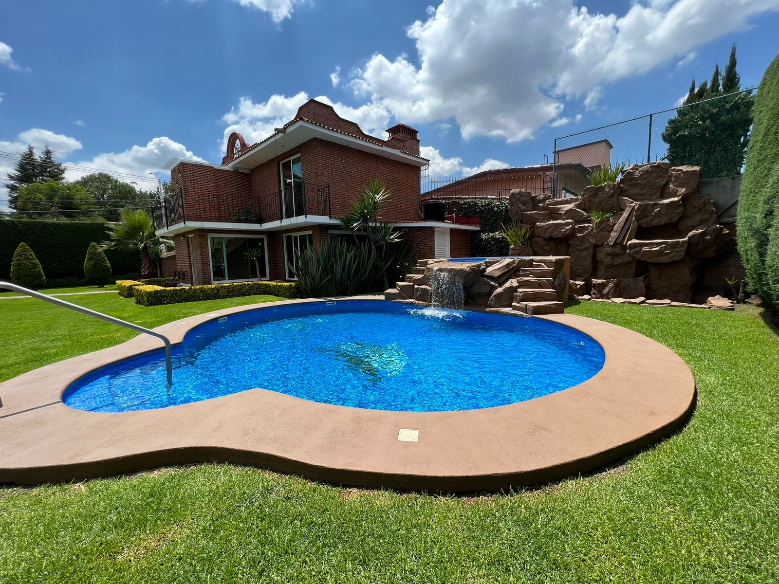 • Alberca con jacuzzi y cascada iluminada
