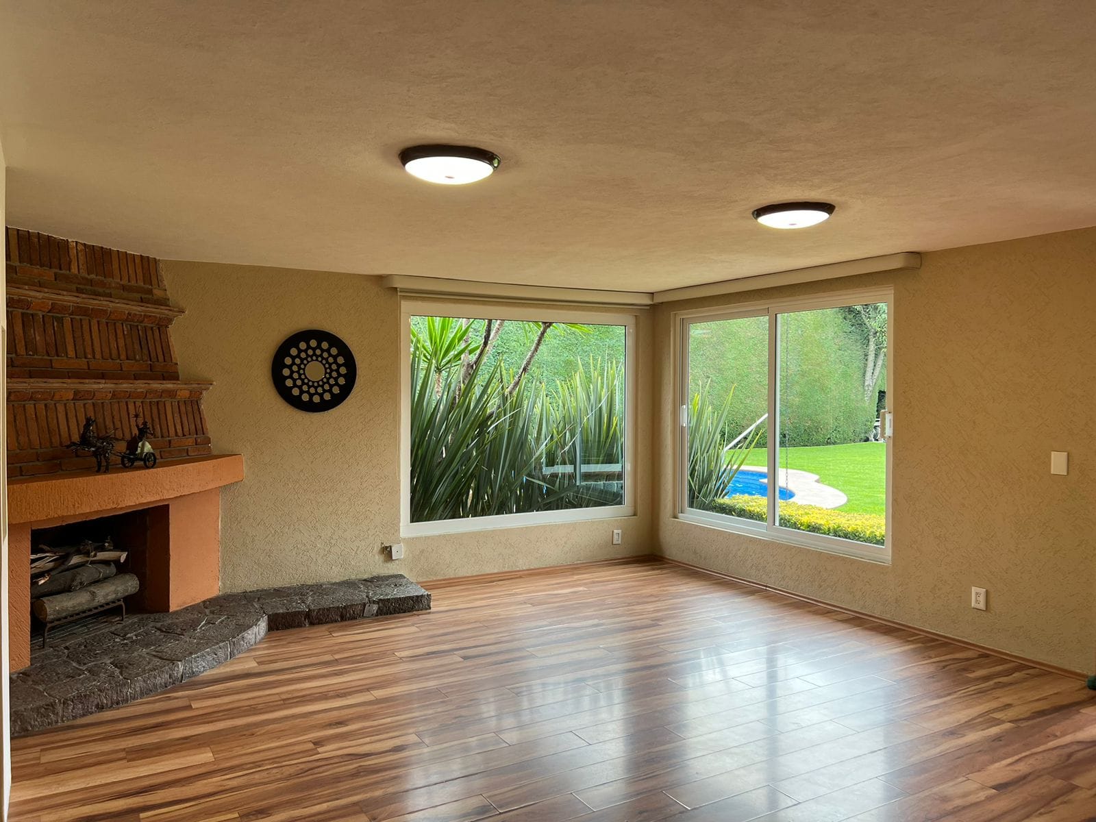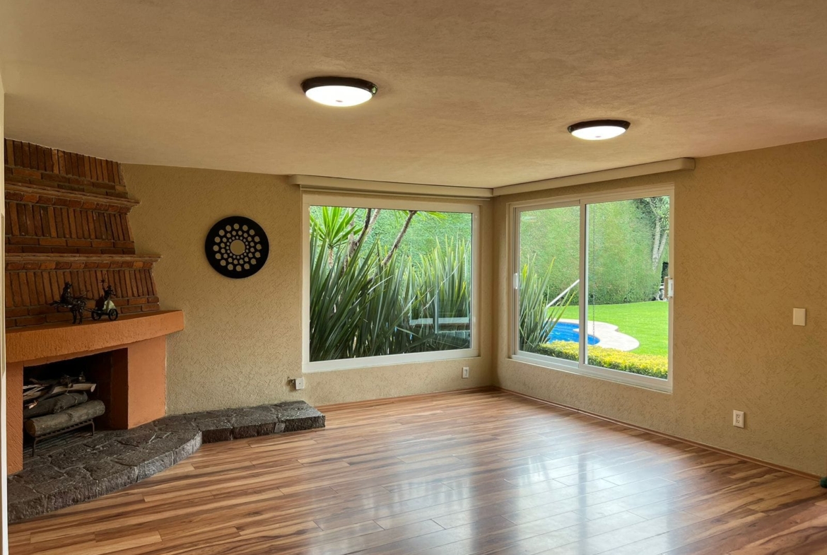 • Área social con chimenea con vista a la alberca